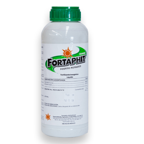 Fortaphit presentación de 20L. Es un excelente, corrector carencial de fósforo y potasio altamente soluble en agua, que proporciona múltiples beneficios a nivel de follaje y mejora notablemente el sistema radicular de los cultivos.